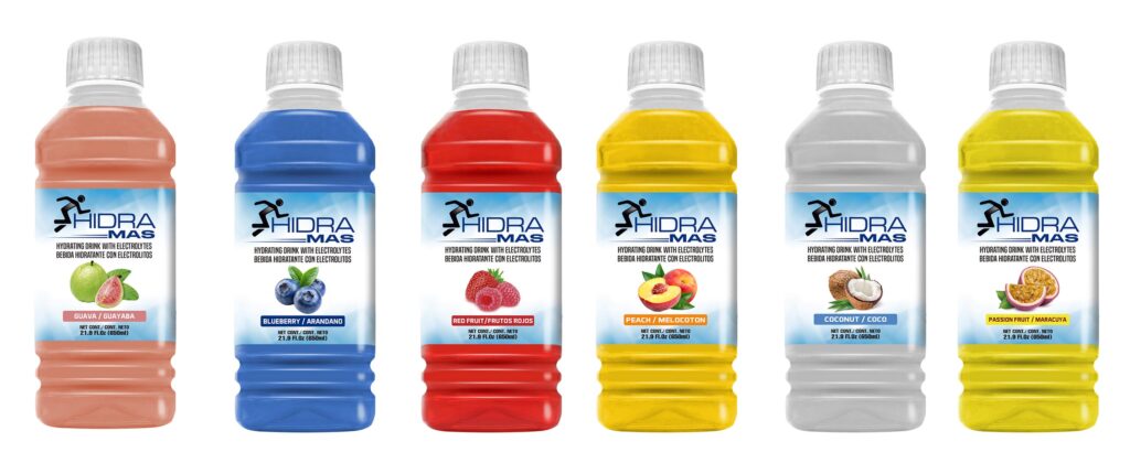 Bebida hidratante con electrolitos, muy refrescante de distintos sabores como Frutos rojos, coco, melocoton, guayaba, maracuya, arandano, uva, naranja, manzana.